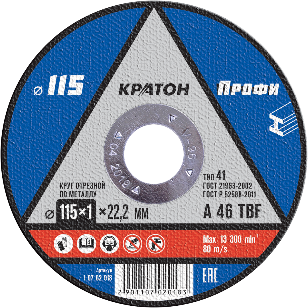Круг отрезной по металлу Кратон “Профи” A 46 TBF 115х1,0х22,2 мм